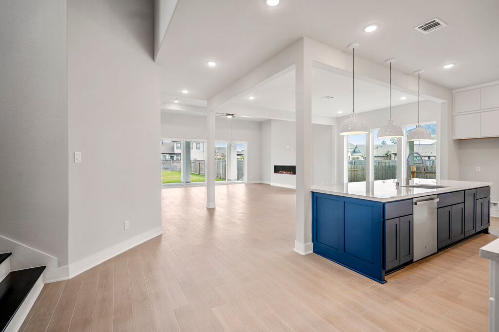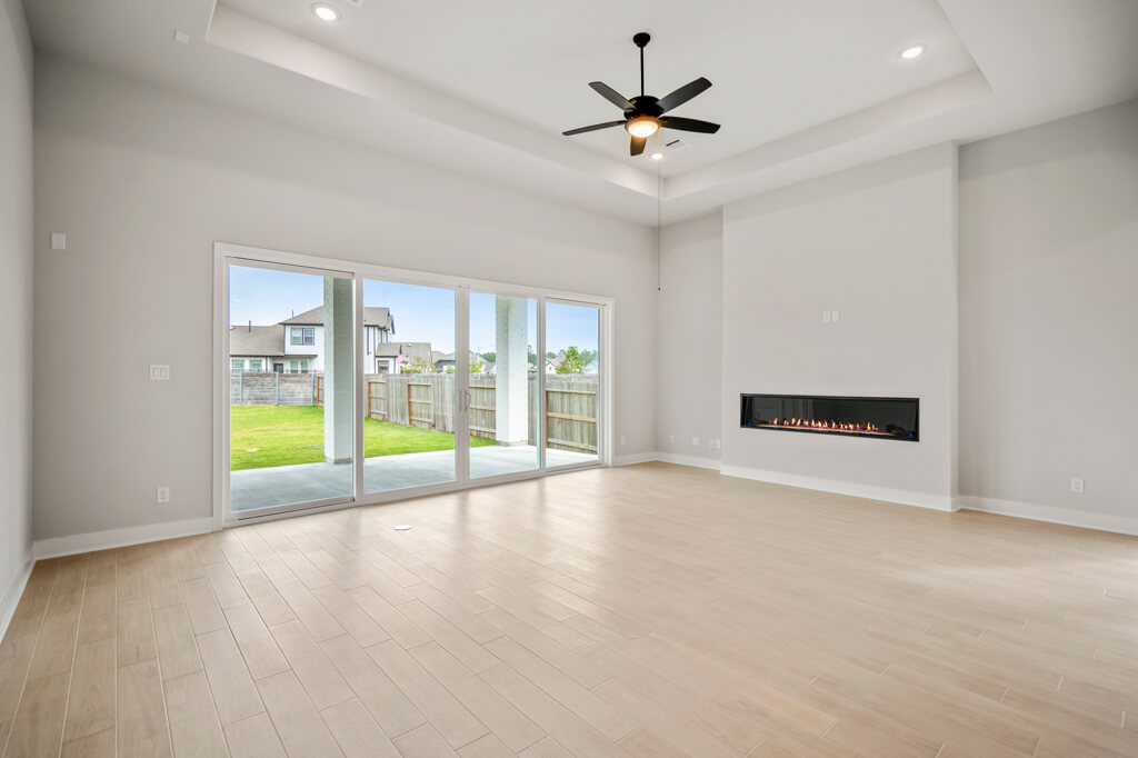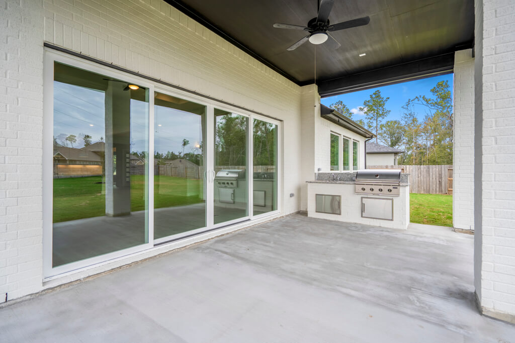 Fireplace at Family Room / Outdoor Kitchen with Extended Covered Patio / Sliding Glass Door at Family Room