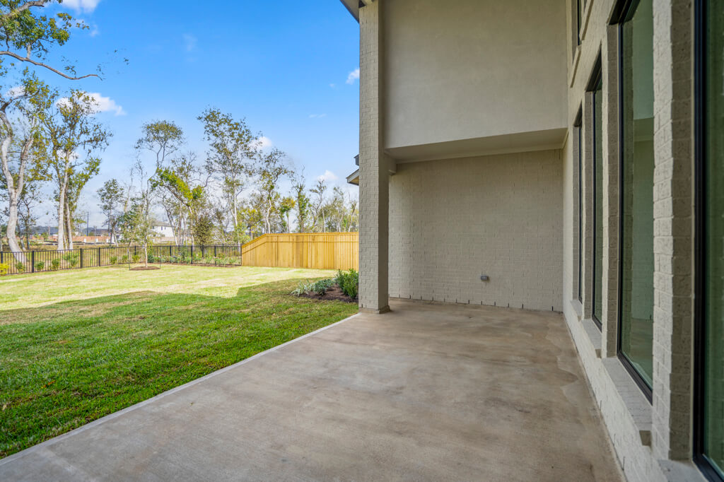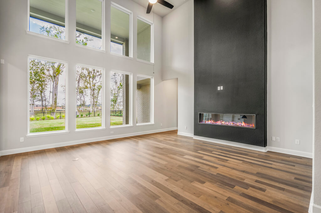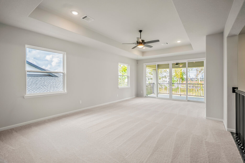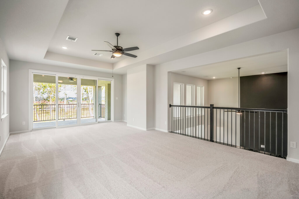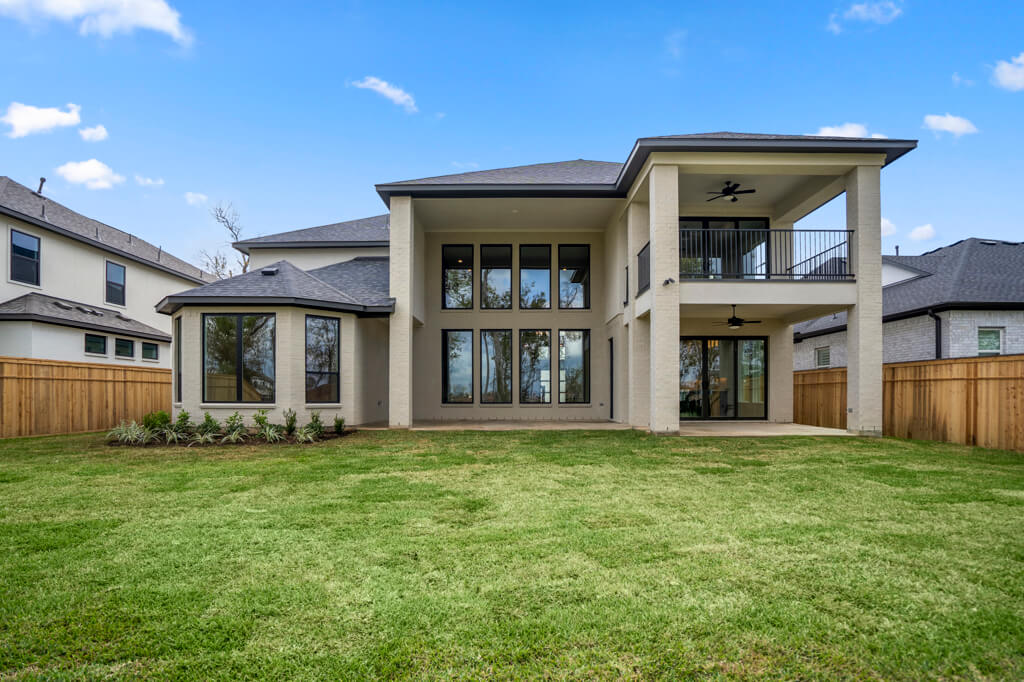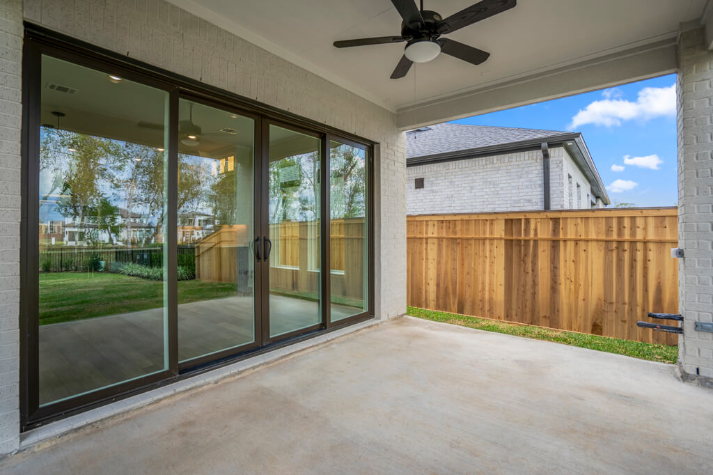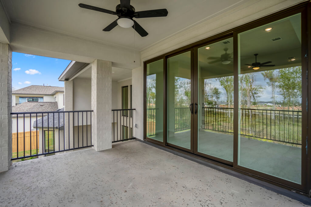 Model Home Floor Plan / Covered Balcony with Sliding Glass Doors / Larger Primary Bath with Walk-Through Shower / Extended Covered Patio with Sliding Glass Doors / Fireplace at Family Room
