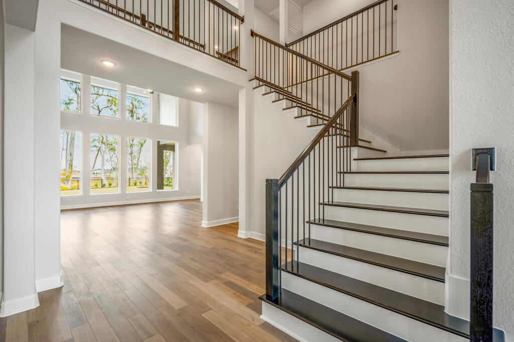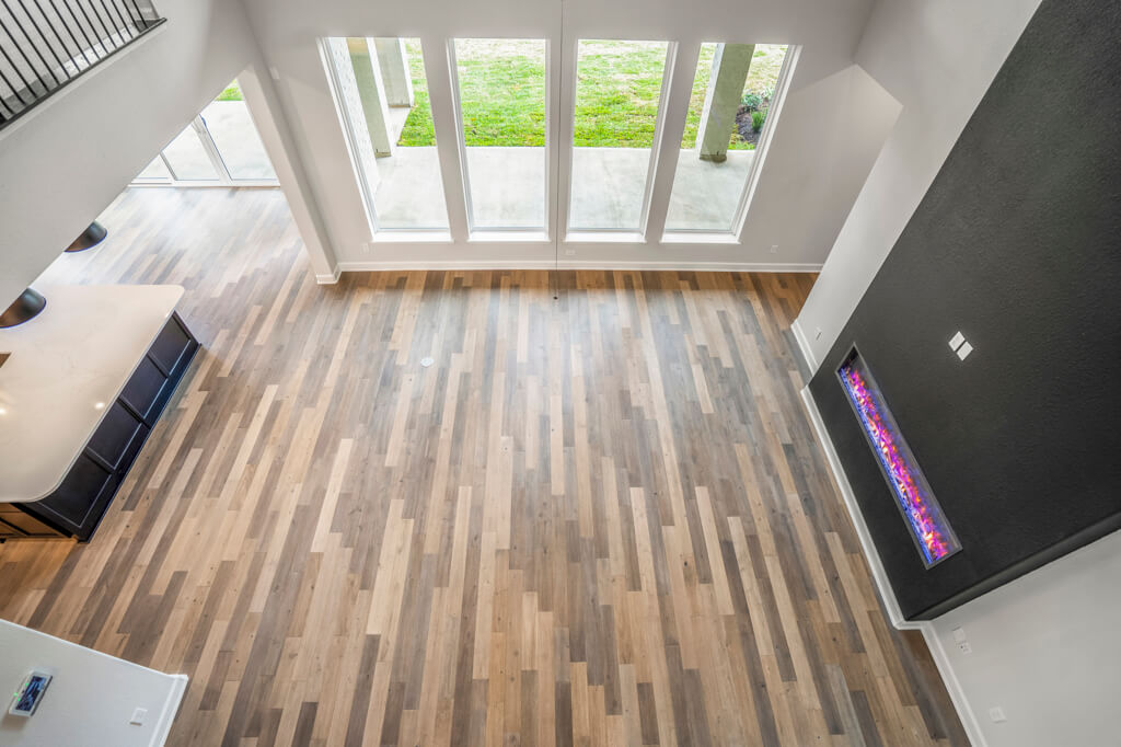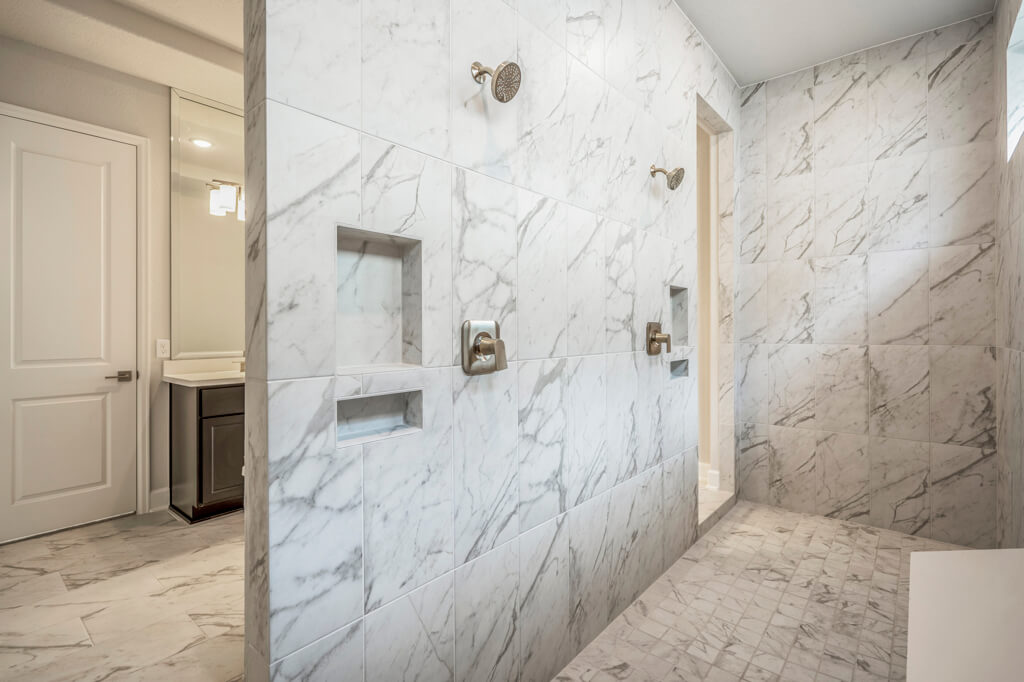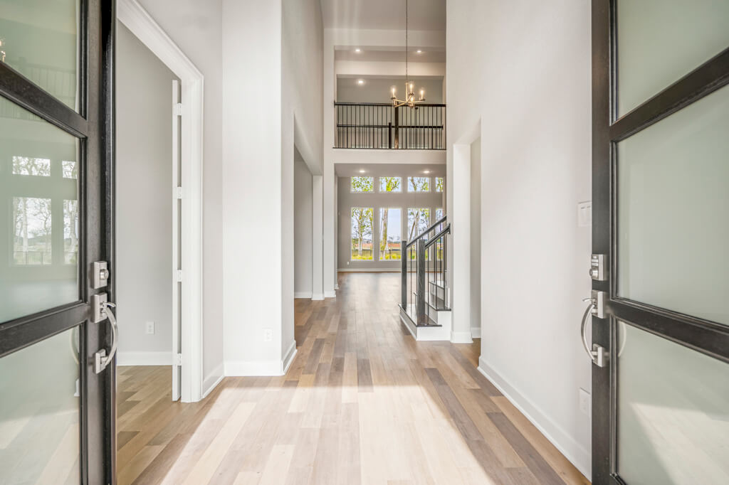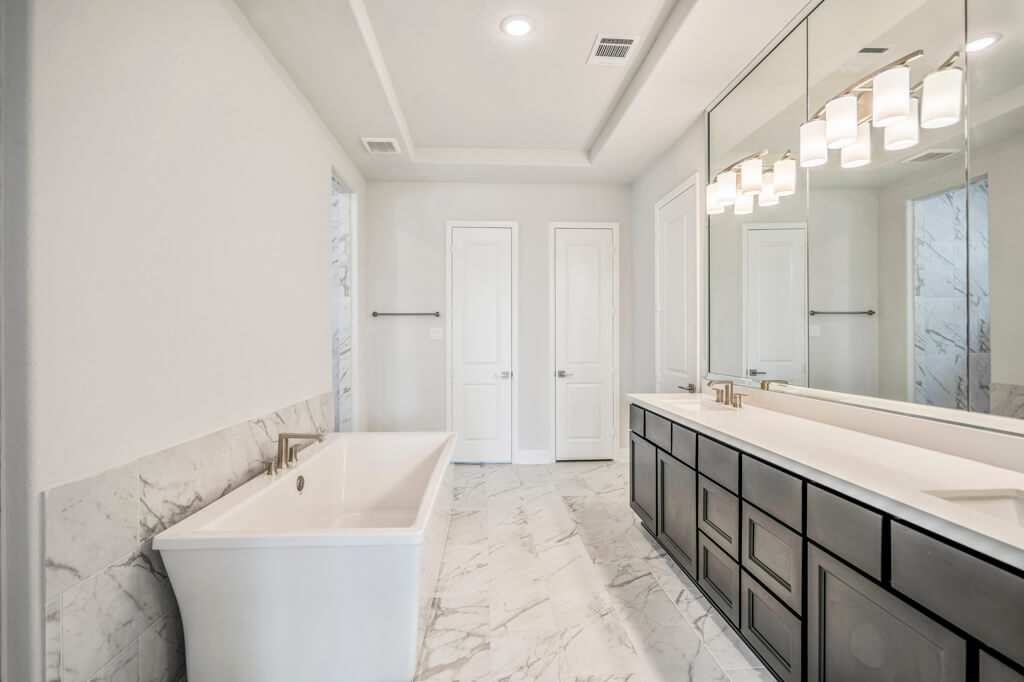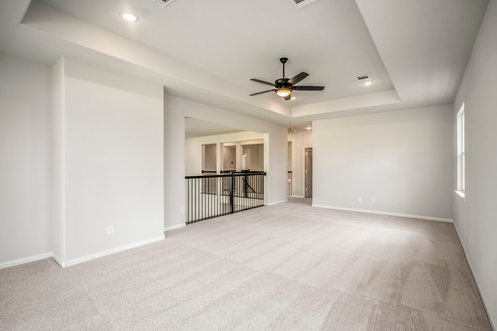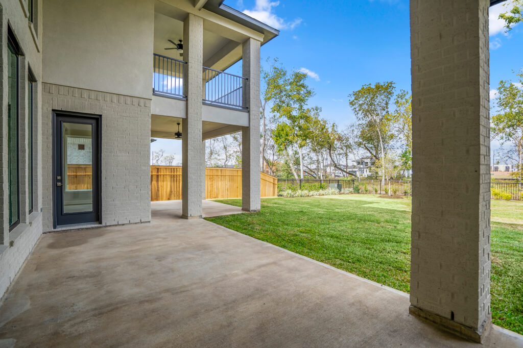 Model Home Floor Plan / Covered Balcony with Sliding Glass Doors / Larger Primary Bath with Walk-Through Shower / Extended Covered Patio with Sliding Glass Doors / Fireplace at Family Room